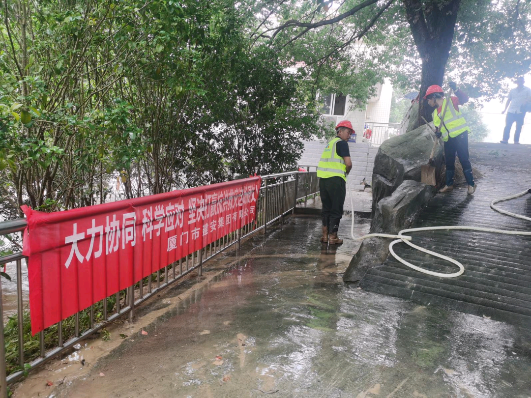 根據上級部門(mén)的安排,我司主要負責三明市三元區東新公園的道路疏通、清淤清理、垃圾清除等災后處理。