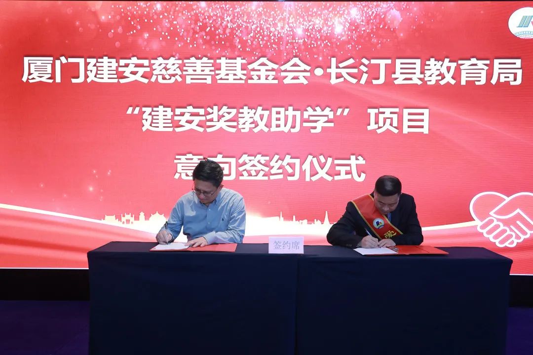 會(huì )上,基金會(huì )與長(cháng)汀教育局簽訂“建安獎教助學(xué)”項目意向協(xié)議書(shū),舉行了愛(ài)心人士捐贈儀式,“項目經(jīng)理愛(ài)心基金”更名授牌儀式和“林德其慈善基金”設立儀式。
